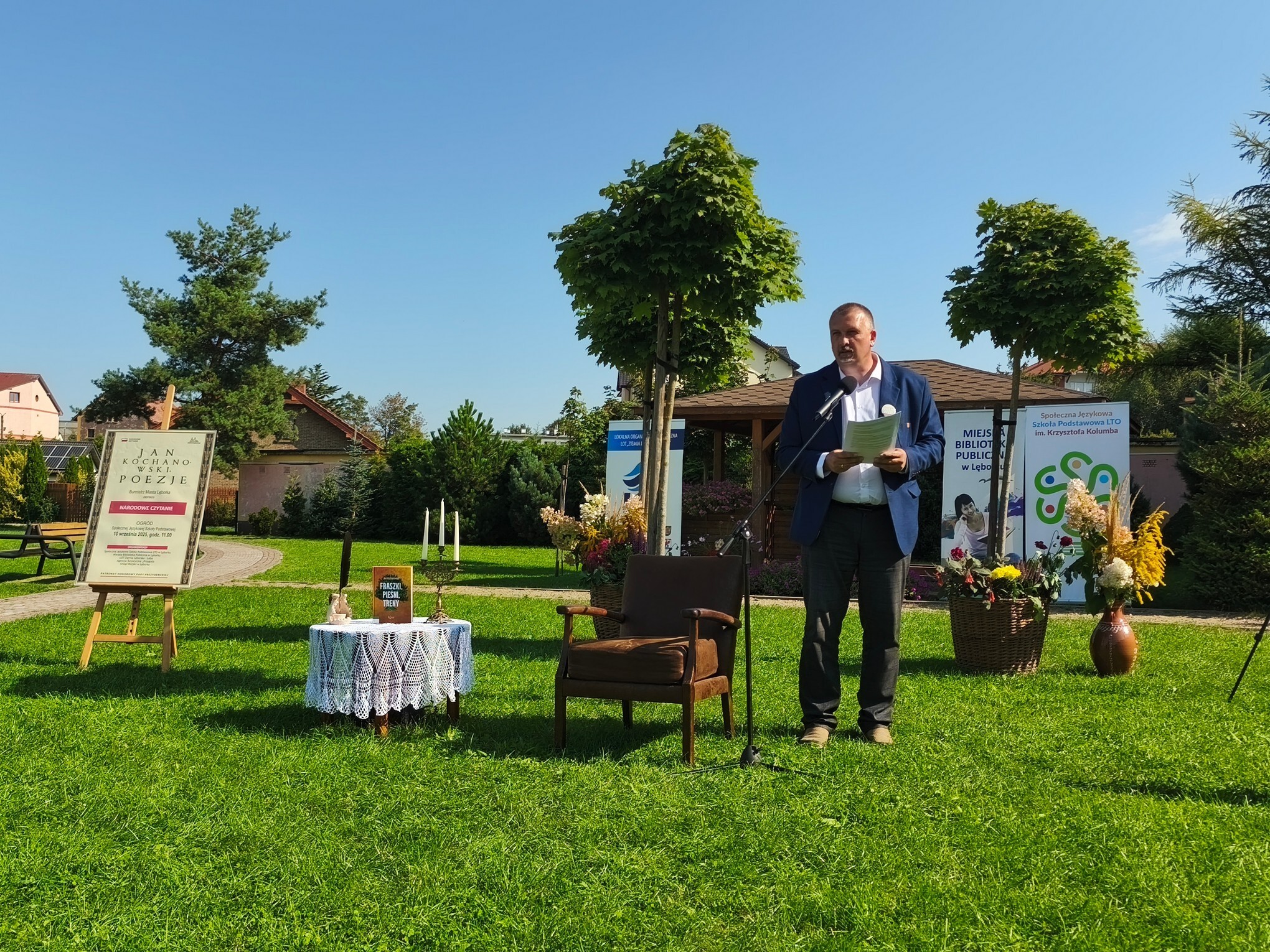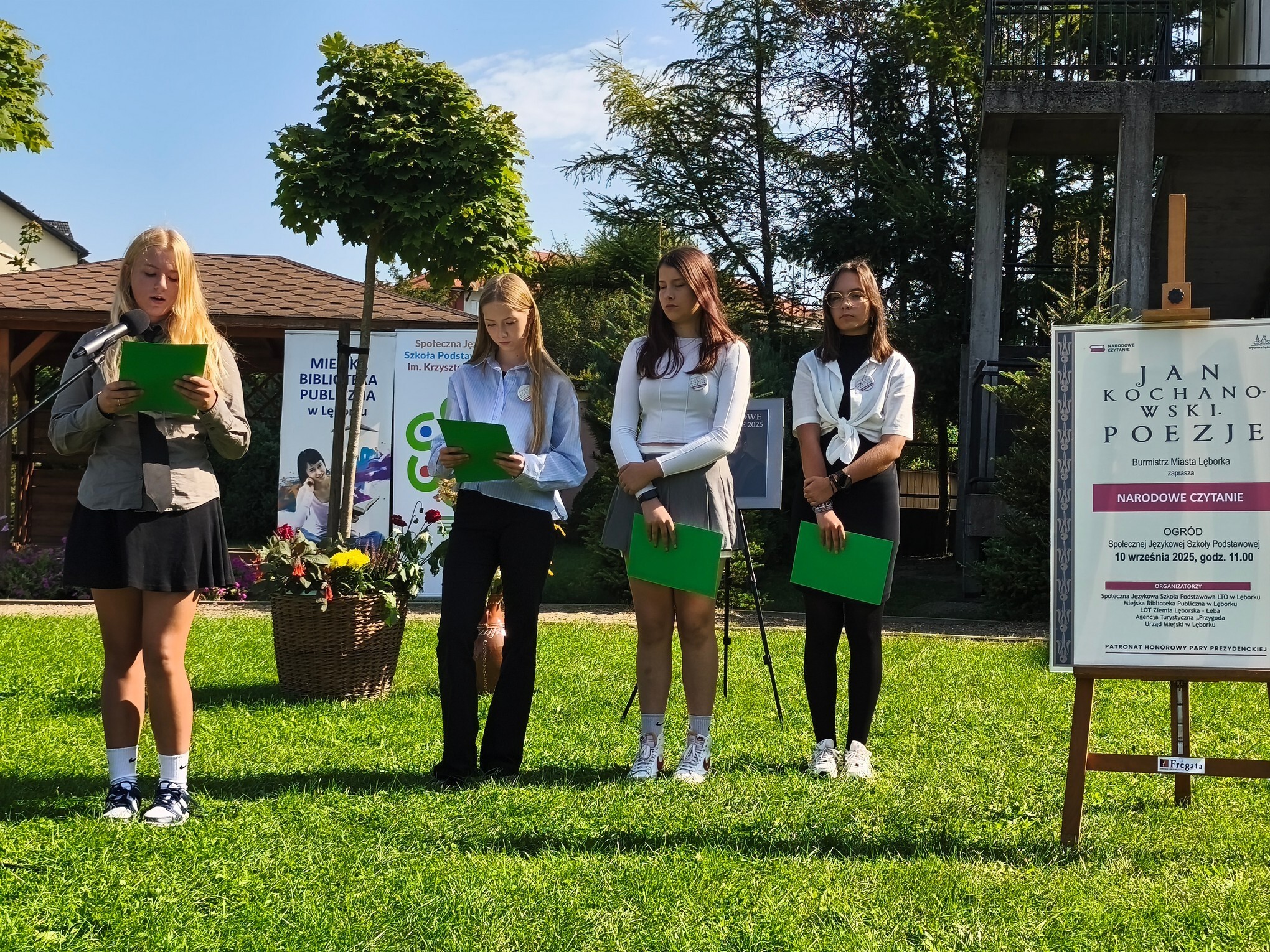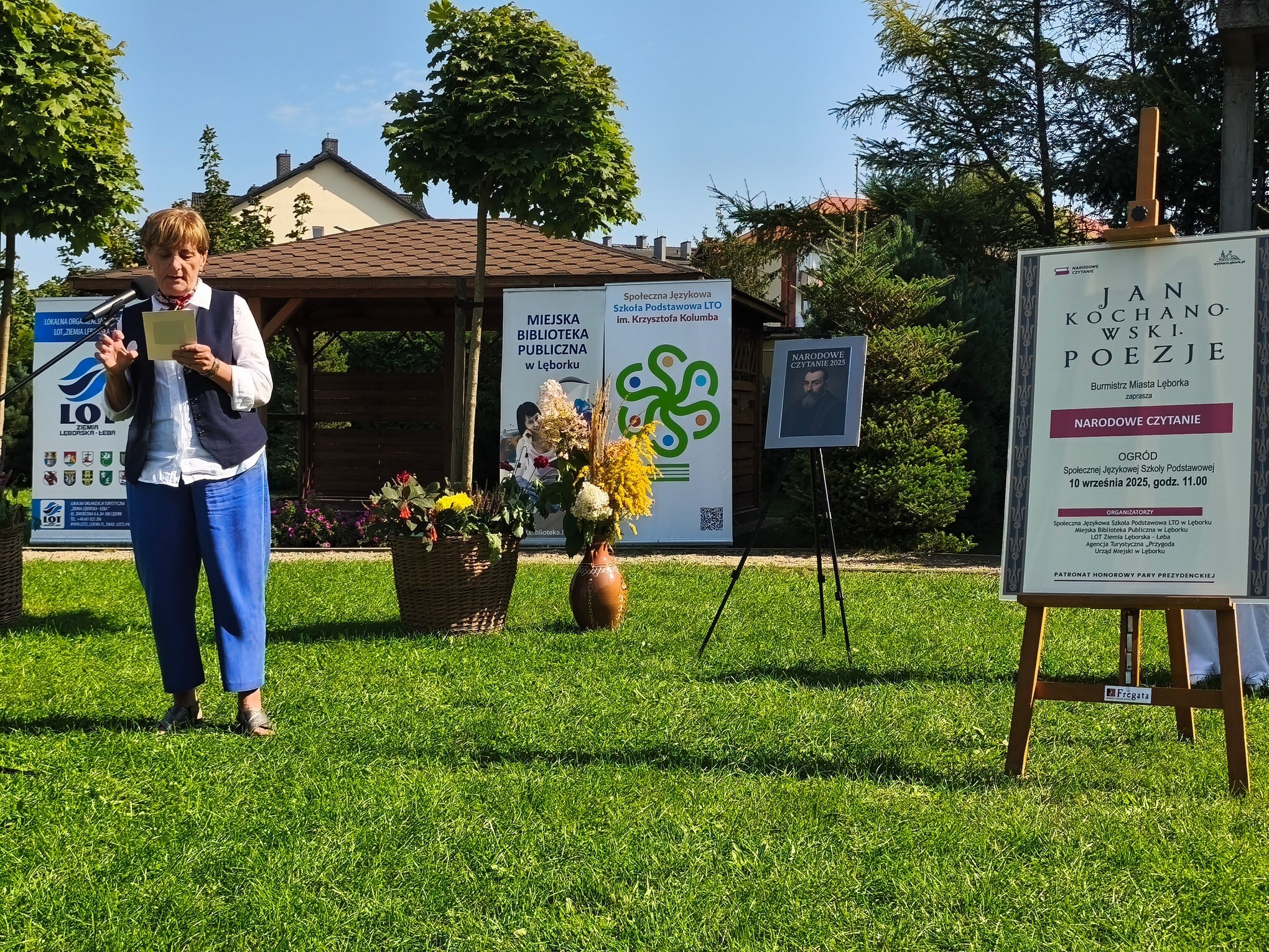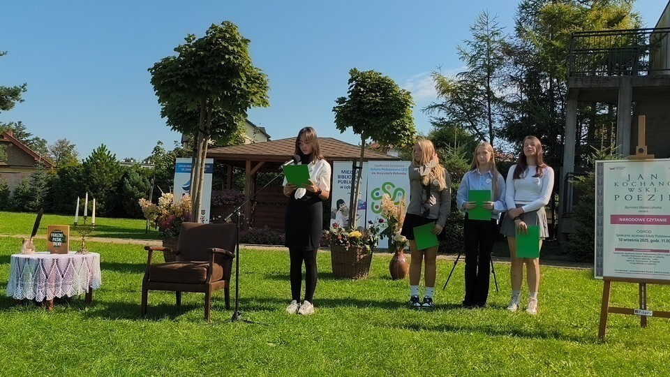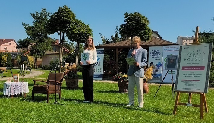 W otoczeniu zieleni i kwiatów przepięknie zabrzmiały strofy Mistrza Renesansowego Słowa, Jana Kochanowskiego. Choć to właśnie on jest nazywany Ojcem Poezji Polskiej , usłyszeliśmy także jego utwór przetłumaczony na język kaszubski w wykonaniu Aleksandry Majkowskiej. Piękno staropolskiej mowy zaprezentowali uczniowie ze Szkoła Podstawowa nr 4 im. Tadeusza Kościuszki w Lęborku, Szkoła Podstawowa nr 8 w Lęborku, Społeczne Liceum Ogólnokształcące w Lęborku i Społeczna Językowa Szkoła Podstawowa LTO im. Krzysztofa Kolumba w Lęborku. Oprawę muzyczną zapewniła Adrianna Treder.