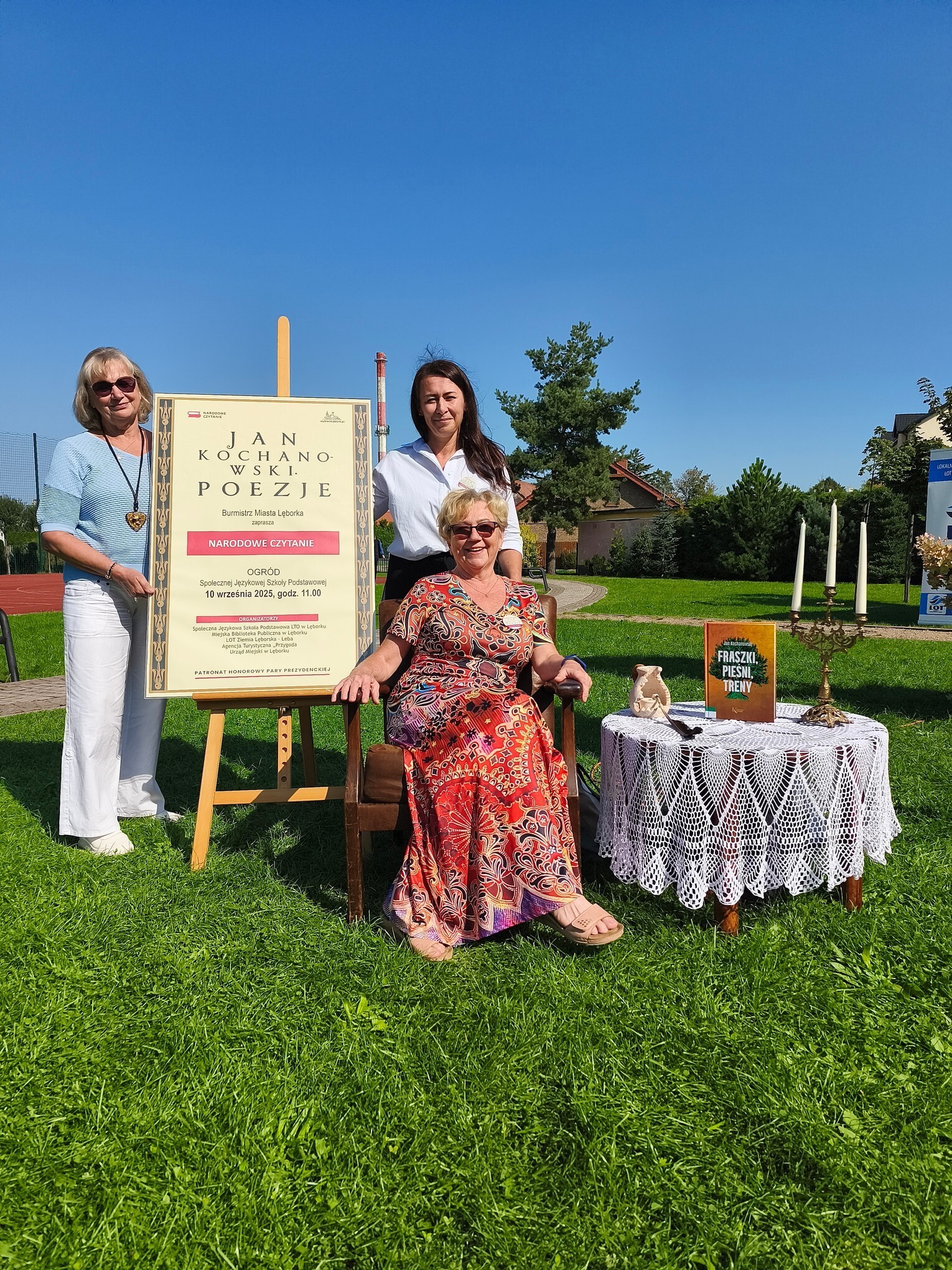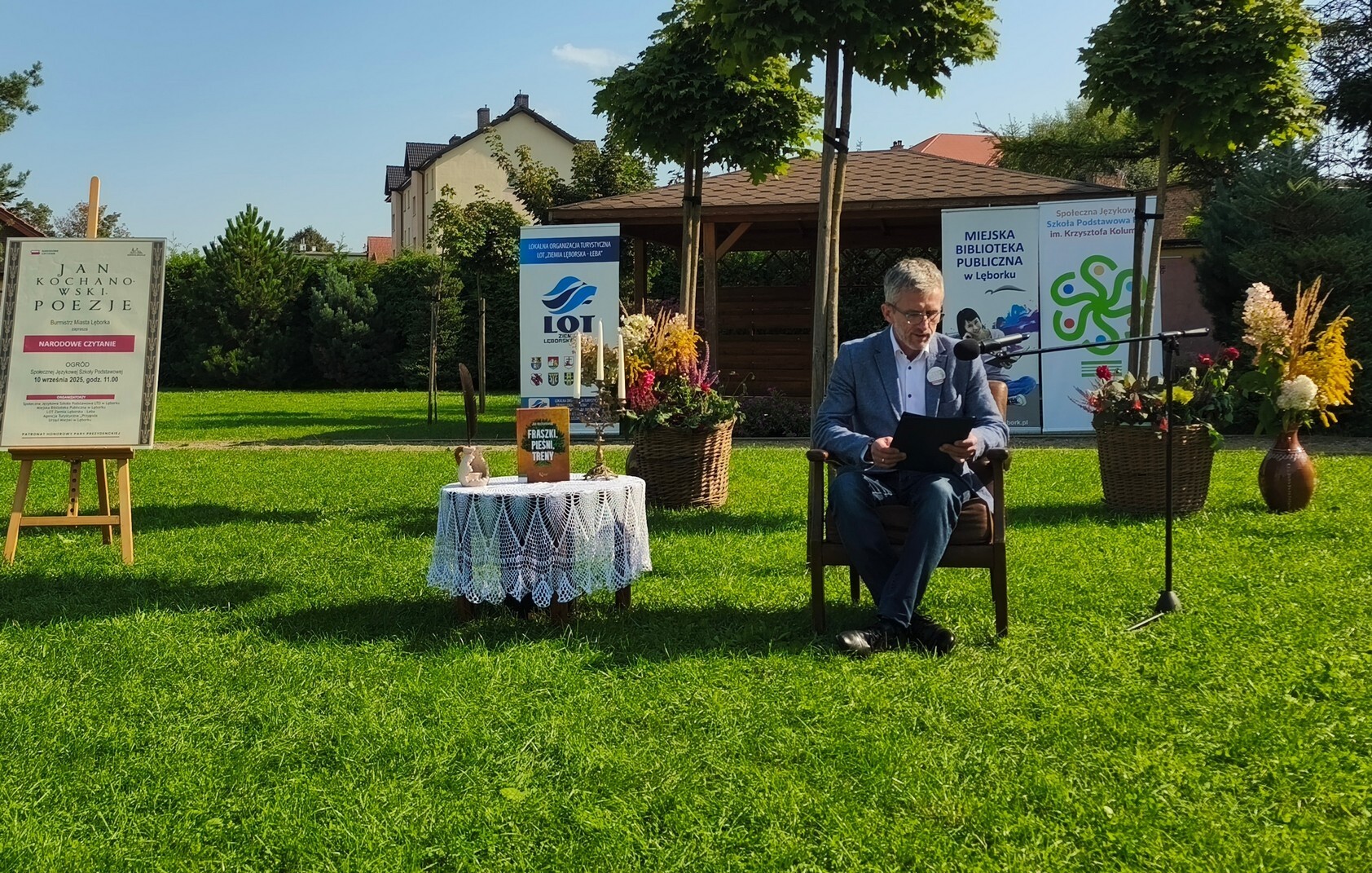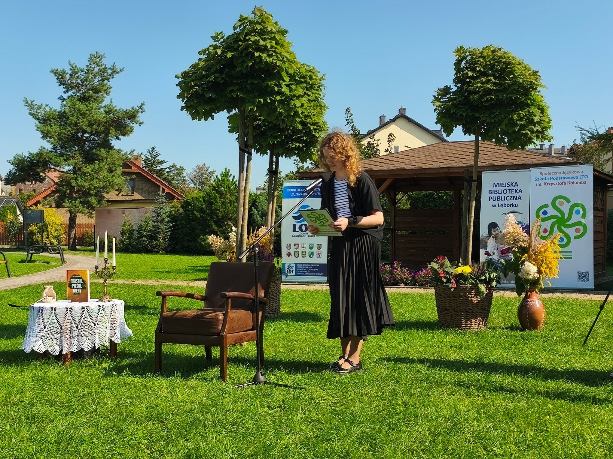 W otoczeniu zieleni i kwiatów przepięknie zabrzmiały strofy Mistrza Renesansowego Słowa, Jana Kochanowskiego. Choć to właśnie on jest nazywany Ojcem Poezji Polskiej , usłyszeliśmy także jego utwór przetłumaczony na język kaszubski w wykonaniu Aleksandry Majkowskiej. Piękno staropolskiej mowy zaprezentowali uczniowie ze Szkoła Podstawowa nr 4 im. Tadeusza Kościuszki w Lęborku, Szkoła Podstawowa nr 8 w Lęborku, Społeczne Liceum Ogólnokształcące w Lęborku i Społeczna Językowa Szkoła Podstawowa LTO im. Krzysztofa Kolumba w Lęborku. Oprawę muzyczną zapewniła Adrianna Treder.