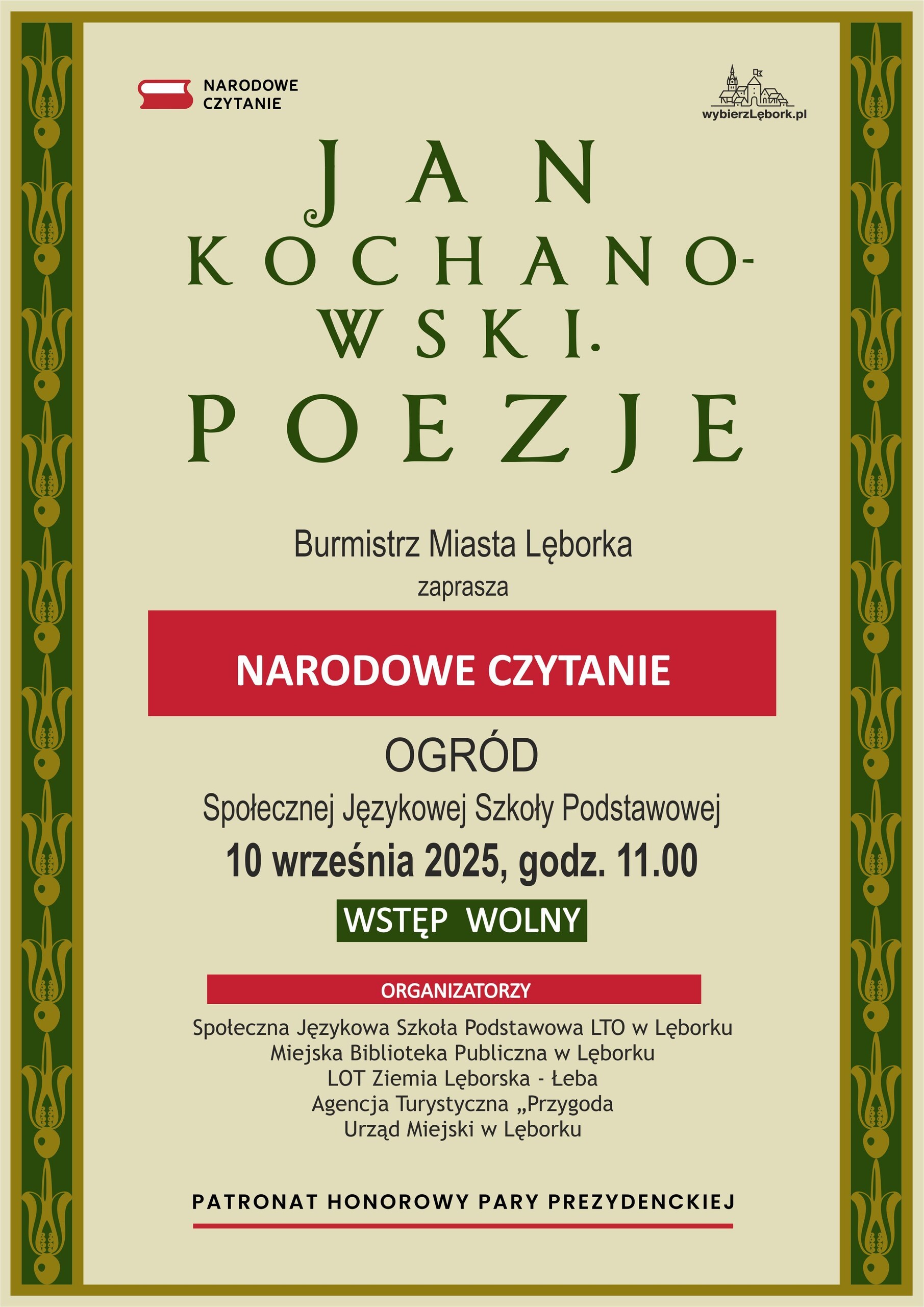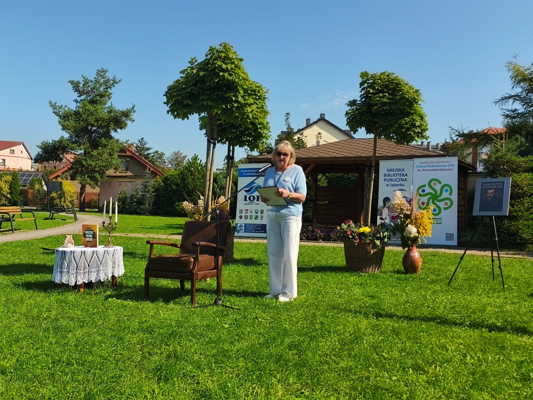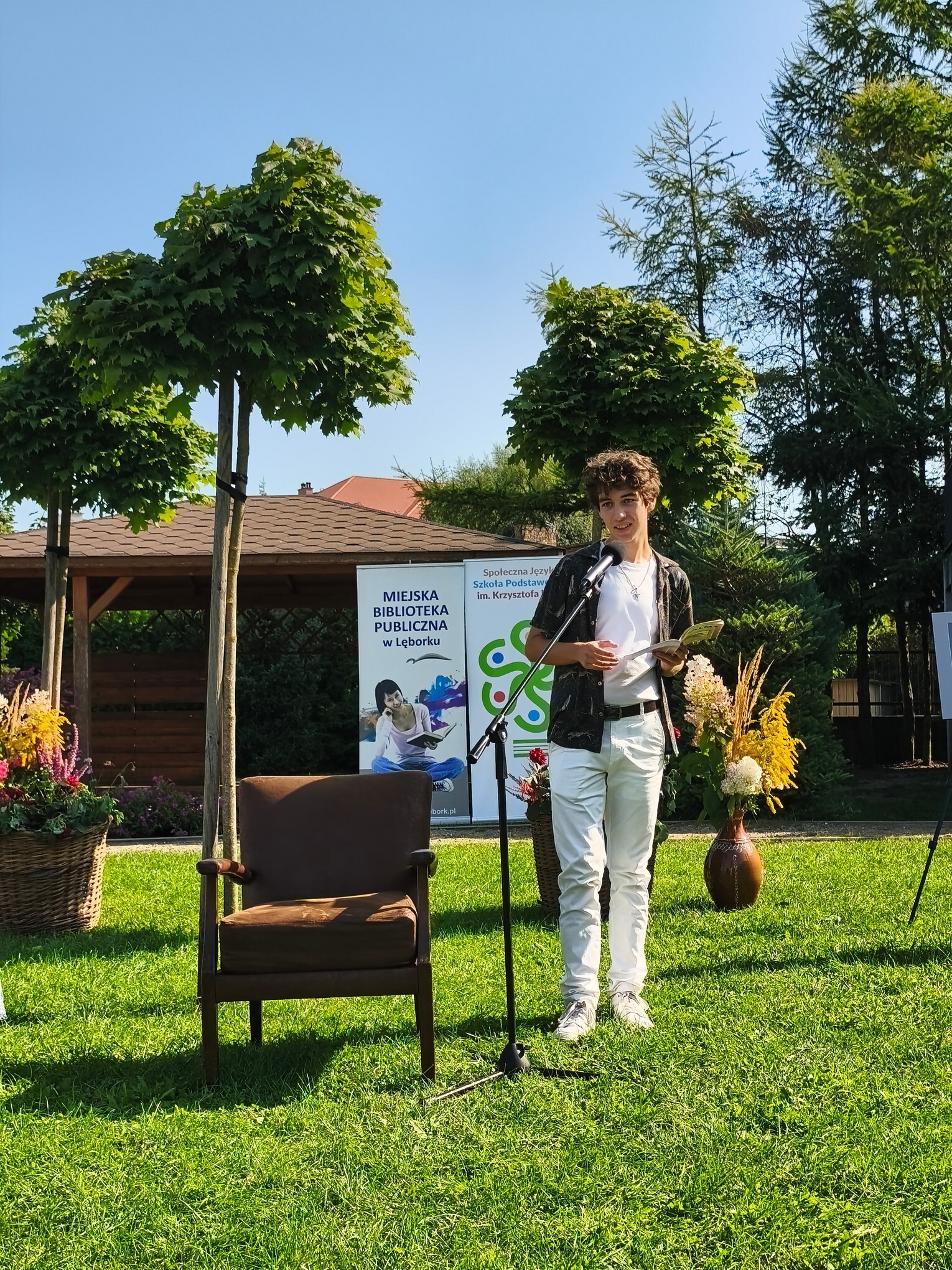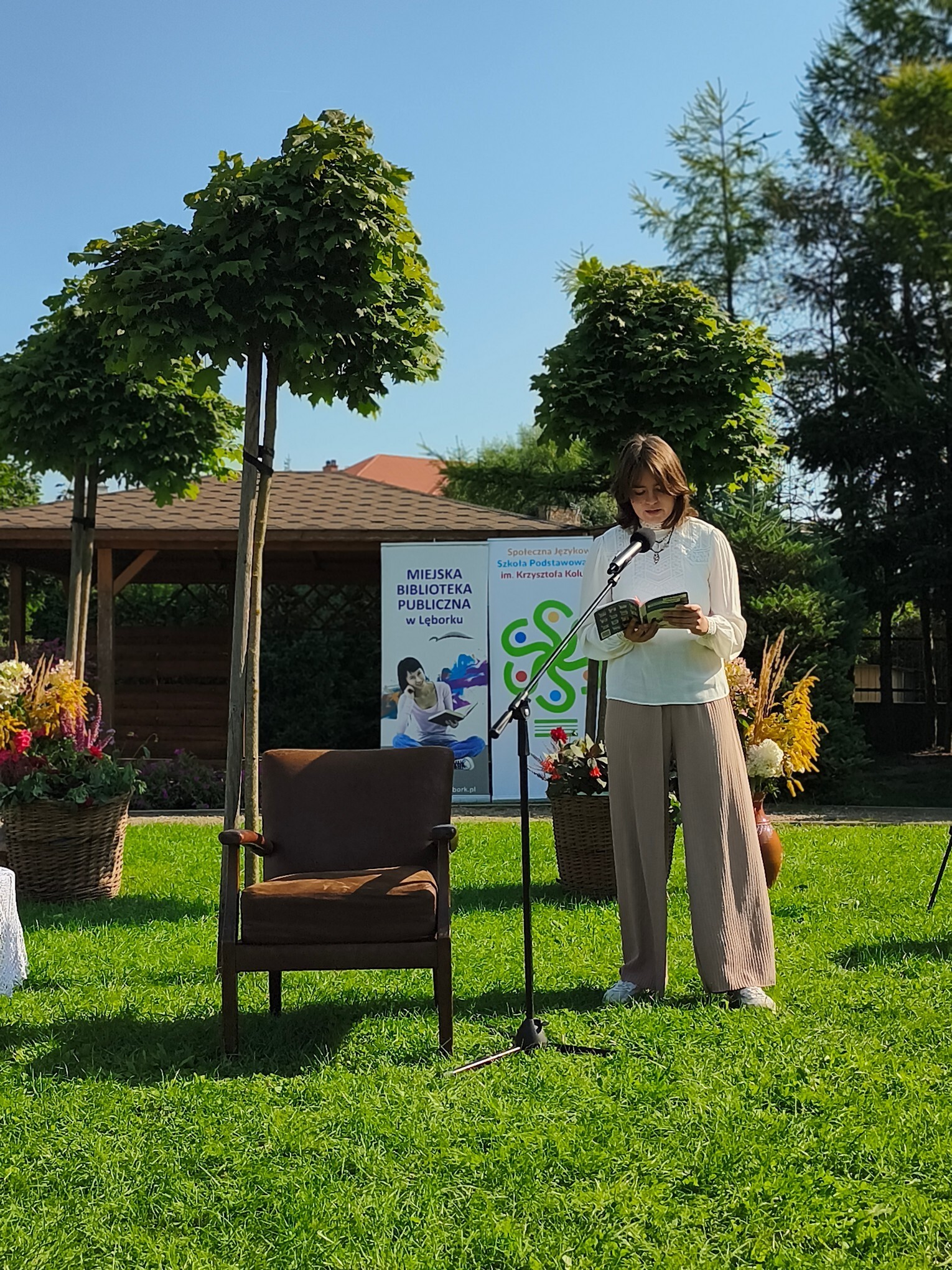 W otoczeniu zieleni i kwiatów przepięknie zabrzmiały strofy Mistrza Renesansowego Słowa, Jana Kochanowskiego. Choć to właśnie on jest nazywany Ojcem Poezji Polskiej , usłyszeliśmy także jego utwór przetłumaczony na język kaszubski w wykonaniu Aleksandry Majkowskiej. Piękno staropolskiej mowy zaprezentowali uczniowie ze Szkoła Podstawowa nr 4 im. Tadeusza Kościuszki w Lęborku, Szkoła Podstawowa nr 8 w Lęborku, Społeczne Liceum Ogólnokształcące w Lęborku i Społeczna Językowa Szkoła Podstawowa LTO im. Krzysztofa Kolumba w Lęborku. Oprawę muzyczną zapewniła Adrianna Treder.