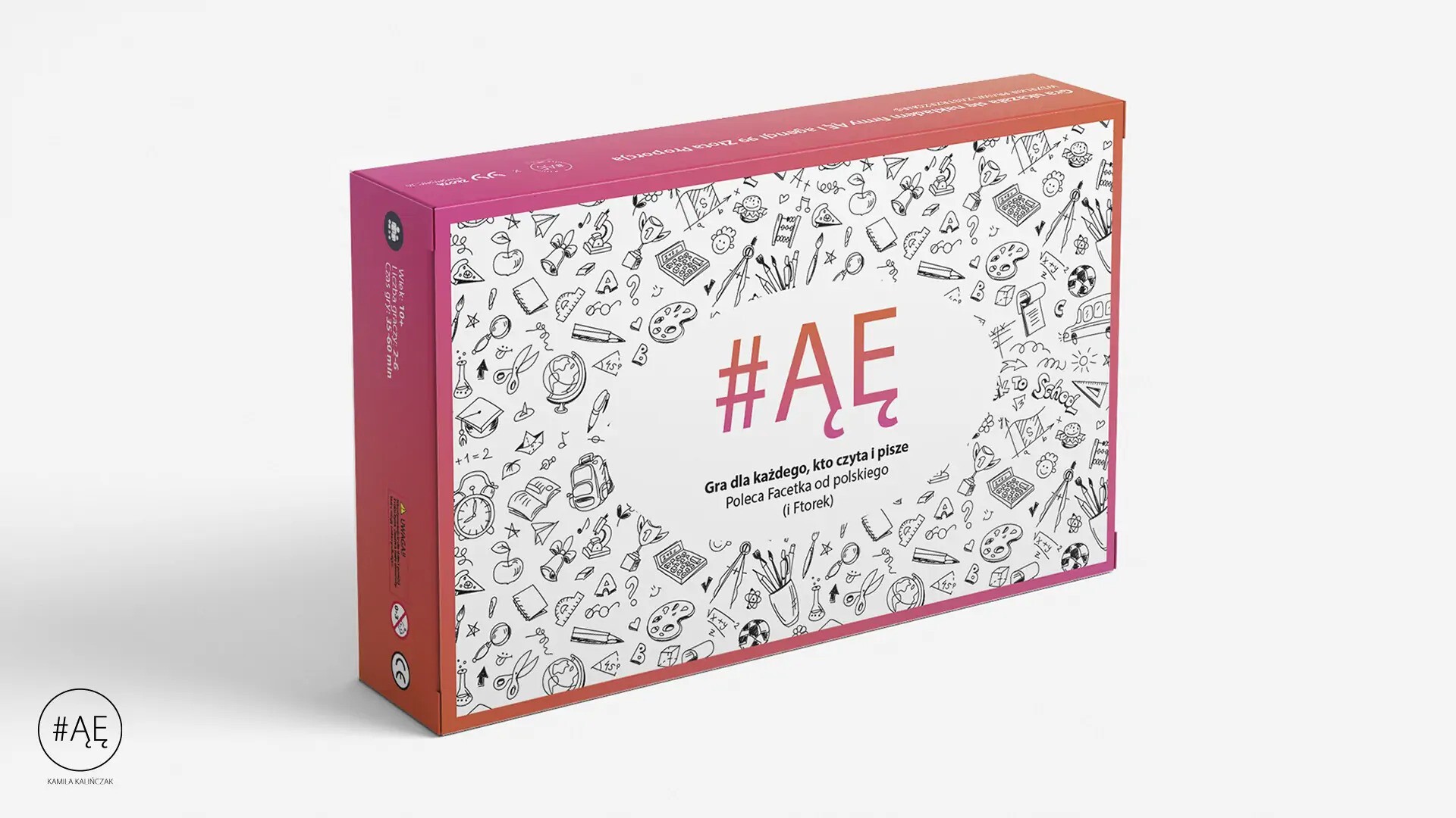 #ĄĘ to edukacyjno-rozrywkowa gra planszowa o poprawności językowej, etykiecie oraz kulturze języka dla najmłodszych i nie tylko. Stworzona została przez Kamilę Kalińczak - dziennikarkę radiową i telewizyjną, lektorkę oraz trenerkę wystąpień publicznych. Gra została zainspirowana cyklem #ĄĘ, który dwa razy w tygodniu Kamila prowadzi na swoim profilu na instagramie.
