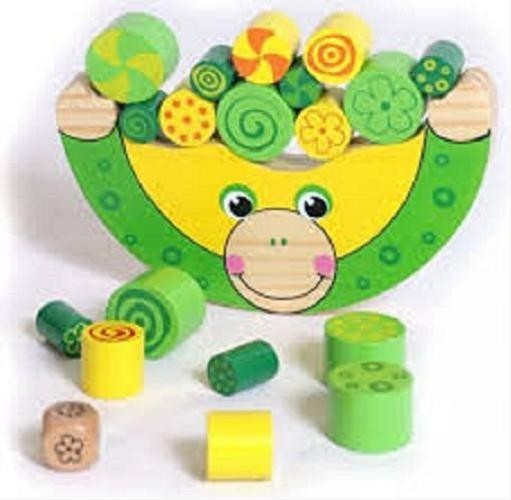 Rozrywka i ćwiczenie zręcznościowe. Należy rzucić kostką i położyć na żabce wałek z wzorem odpowiadającym wzorowi na kostce. Trzeba tak układać elementy, aby nie spadły, a żabka się nie przewróciła. Osoba, która spowoduje przewrócenie żabki przegrywa.
