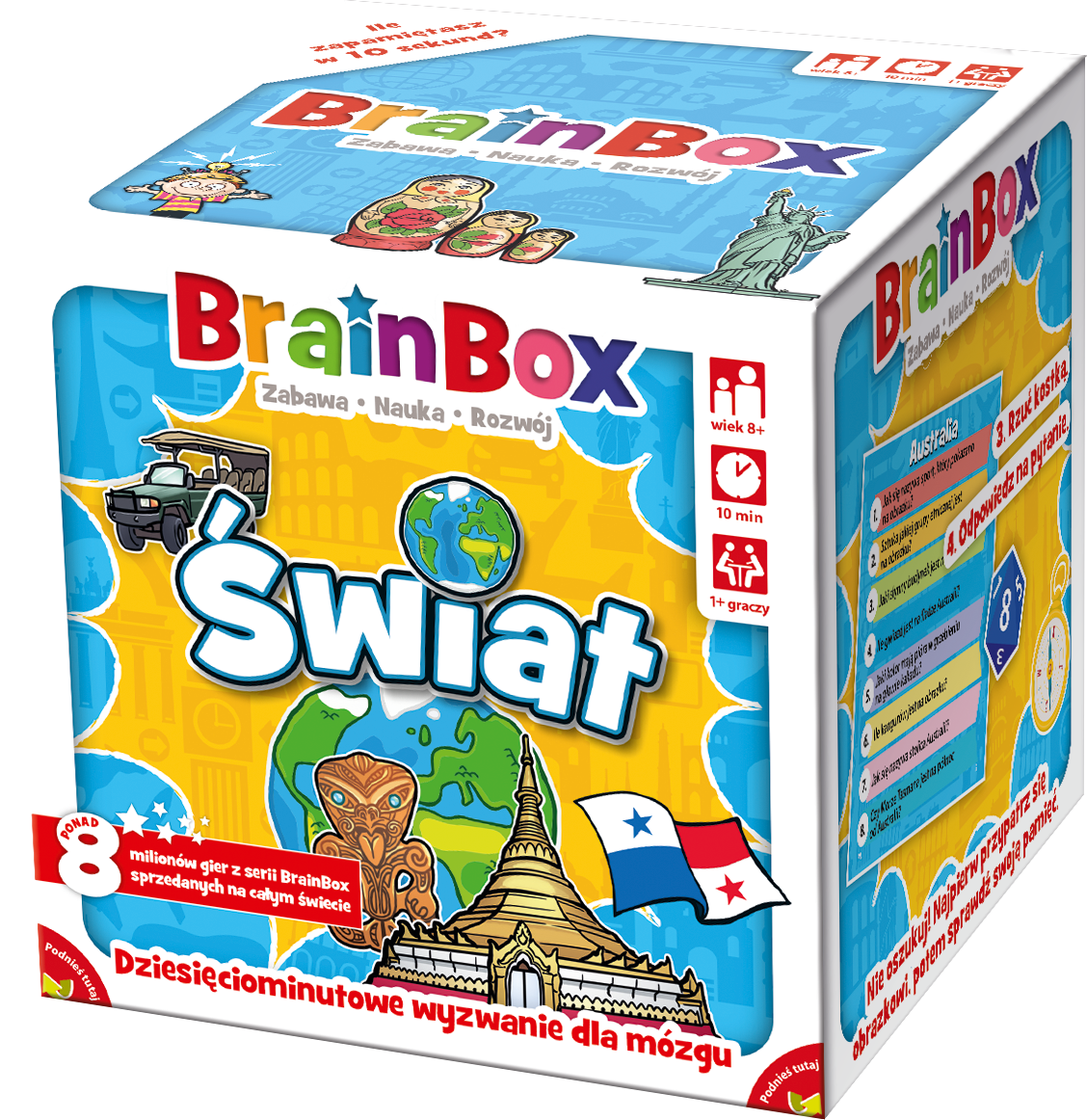 Flagi, mapy, stolice i symbole poszczególnych państw przestaną być zagadką dzięki BrainBox - Świat! Na 55 kartach znajdziesz informacje o najważniejszych krajach, a angażujący sposób rozgrywki sprawi, że Twoje dziecko bez wysiłku będzie poszerzało swoją wiedzę z zakresu geografii.