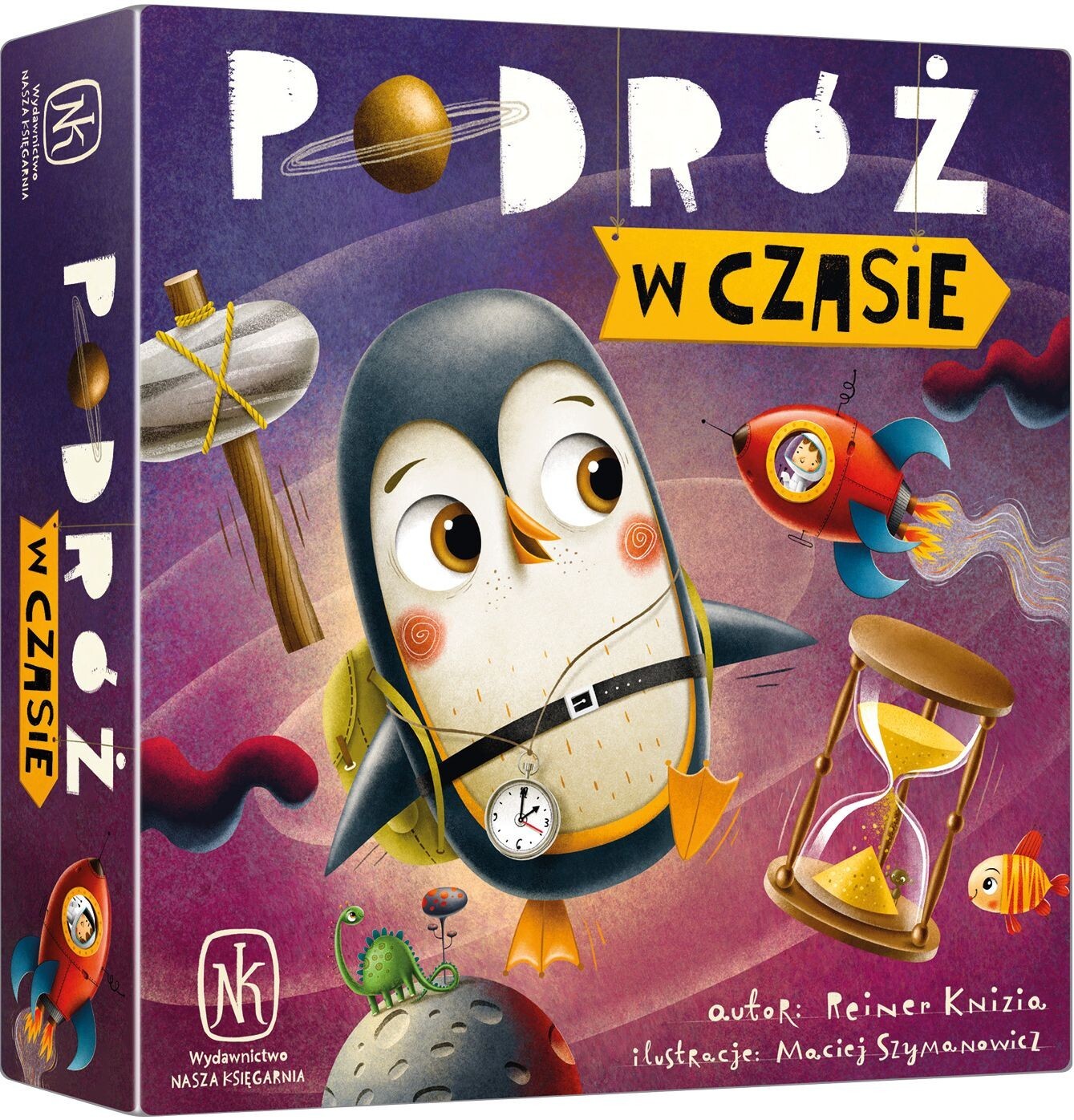 Pingwin Przemysław zabiera Was w podróż po niesamowitych krainach. Będziecie opowiadać historie związane z tymi krainami i zapamiętywać widziane tam przedmioty. Wariant gry pozwala dzieciom nazywać emocje związane z przygodami pingwina Przemysława. Czy potrafisz wymyślić historyjki łączące krainy z przedmiotami? Gra rozwija umiejętność opowiadania, pamięć, wyobraźnię, skojarzenia i empatię. Do gry dołączony jest komentarz psychologa dziecięcego!