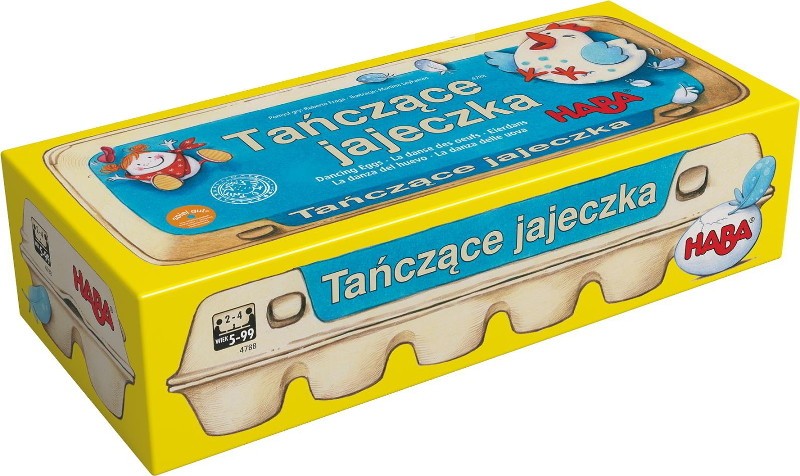 Zagdakaj jak kura, zapiej jak kogut, albo złap kostkę lub jedno z jajeczek! Jeśli uda Ci się być najszybszym w nagrodę otrzymujesz jajko, jednak nie kładziesz go przed sobą, a ponownie rzucasz kostką, aby określić w jakim miejscu musisz je trzymać przez resztę zabawy. Zgięcie łokcia, między kolanami, czy pod pachą? A może pod brodą, albo przytrzymując głową na barku?